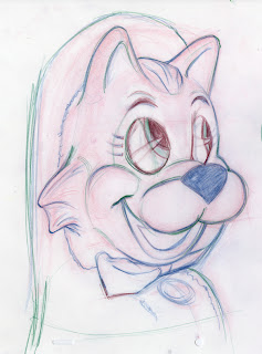 This fellow is working hard, but maybe not following the instructions exactly.Start by drawing the basic shapes-the oval for the head, and then add the overall muzzle shape. Get those right first, then break each shape into its smaller components.