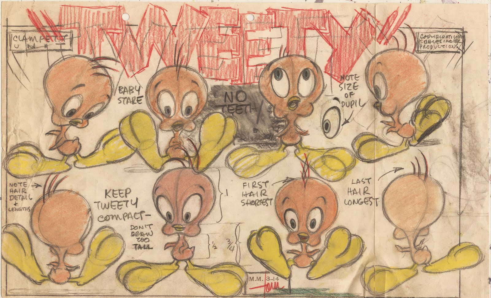 Bill Wray sent me this nice scan of one of the first Tweety models drawn by Tom McKimson for Bob Clampett.